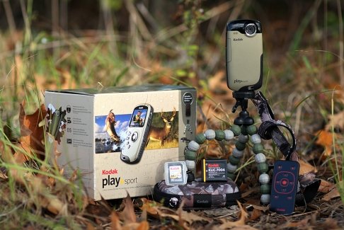 The KODAK PLAYSPORT Video Camera Bundle is a must-have for all sportsmen and outdoor enthusiasts. The included hard carrying case is ideal for protecting your PLAYSPORT while in your pocket or tackle box. Use the Kodak Flex-Pod tripod with the remote control to help set up for stationary image and video captures. The neck strap helps secure your camera while climbing into a tree stand or battling rough waters, and the 4 GB memory card and extra battery provide extended use of your PLAYSPORT Video Camera on any hunting or fishing excursion.