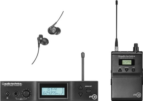 With Audio-Technica's M3M Wireless In-ear Rig, you get your choice of 1321 UHF channels, and useful LCD info displays on both the transmitter and receiver for setting your personal preferences. You and other musicians on stage using the M3M rig will enjoy controlling the volume and mix of two separate signals via the controls on the M3R stereo body-pack receiver, ensuring that you can dial in the right sound and hear yourself accurately. While you can use up to 16 complete M3 systems at once on stage, you can actually use any number of M3R stereo receivers on the same frequency with one M3T stereo transmitter. An excellent, pro choice for live performance monitoring - hear yourself more clearly with Audio Technica's M3M Wireless In-ear Rig!